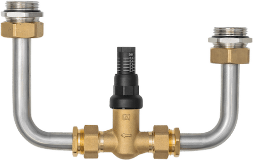 Alphatec sada s automatickým přepouštěcím ventilem pro plynulý provoz čerpadla při uzavřených všech topných okruzích.